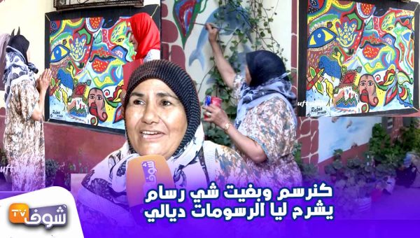 شوف المرأة بمناسبة اليوم الوطني للمرأة المغربية سلطت الضوء على سيدة ستينية امية ترسم على الجدران بشكل فطري تلقائي