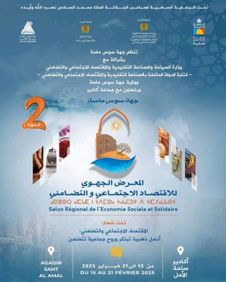 انطلقت يوم أمس السبت 15 فبراير 2025 فعاليات الدورة الثانية للمعرض الجهوي للاقتصاد الاجتماعي والتضامني بأكادير، تحت شعار “الاقتصاد الاجتماعي والتضامني: أنامل ذهبية تبتكر وروح جماعية تتضامن”. ويستمر المعرض إلى غاية 21 فبراير، بمشاركة واسعة من الفاعلين في هذا القطاع.