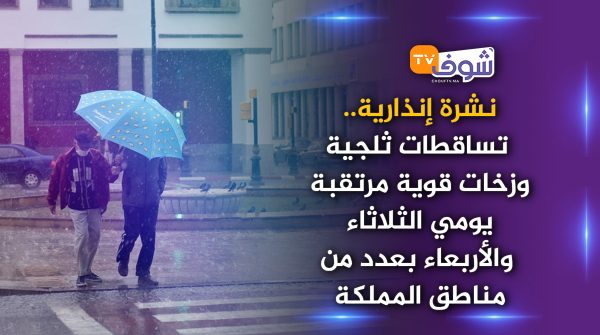 نشرة إنذارية.. تساقطات ثلجية وزخات قوية مرتقبة يومي الثلاثاء والأربعاء