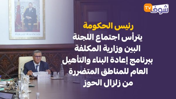 ترأس رئيس الحكومة عزيز أخنوش، يوم الأربعاء 10 شتنبر 2025 بالرباط، اجتماع اللجنة البين وزارية المكلفة ببرنامج إعادة البناء والتأهيل العام للمناطق المتضررة من زلزال الحوز، تم خلاله الوقوف على التقدم المسجل في تنزيل هذا البرنامج، تنفيذا للتعليمات الملكية السامية.