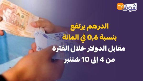 أفاد بنك المغرب بأن سعر الدرهم ارتفع بنسبة 0,6 في المائة مقابل الدولار الامريكي، وبنسبة 0,2 في المائة مقابل الأورو، خلال الفترة من 4 إلى 10 شتنبر 2025.