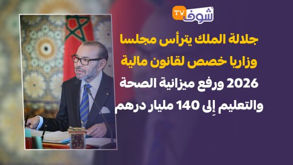 جلالة الملك يترأس مجلسا وزاريا خصص لقانون مالية 2026 ورفع ميزانية الصحة والتعليم إِلى 140 مليار درهم