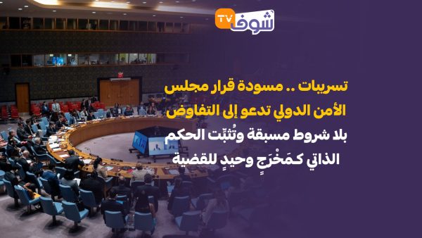 تسريبات .. مسودة قرار مجلس الأمن الدولي تدعو إلى التفاوض بلا شروط مسبقة وتُثبِّت الحكم الذاتي كـمَخْرَجٍ وحيدٍ للقضية