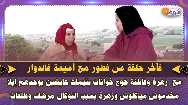 فآخر حلقة من فطور فالدوار مع زهرة وفاطنة جوج خواتات يتيمات عايشين بوحدهم