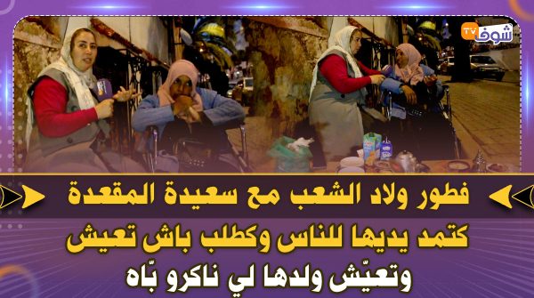 فطور ولاد الشعب مع سعيدة المقعدة كتمد يديها للناس وكطلب باش تعيش وتعيّش ولدها