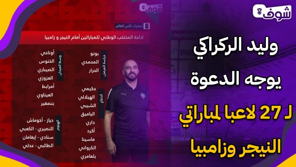 إقصائيات مونديال 2026.. وليد الركراكي يوجه الدعوة لـ 27 لاعبا لمباراتي النيجر وزامبيا