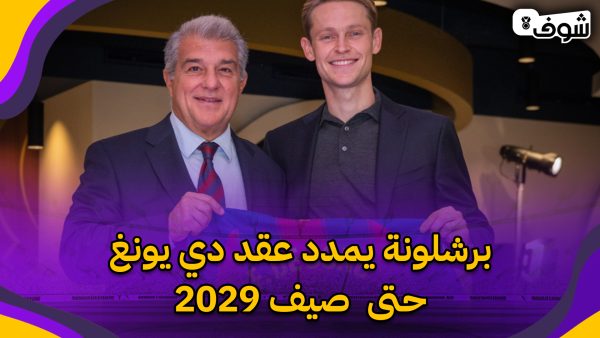أعلن نادي برشلونة رسميا عن تجديد عقد اللاعب الهولندي فرينكي دي يونغ حتى صيف 2029 مع رفع قيمة الشرط الجزائي إلى 500 مليون يورو.